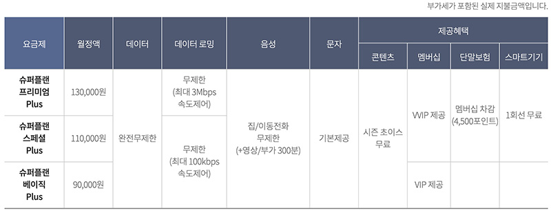 스마트폰과 함께 스마트워치도 함께 사용하는 사람이라면 슈퍼플랜 프리미엄이나 스펠셜 요금제도 고려해 볼만 합니다.