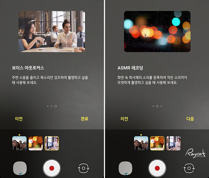 보이스 아웃포커스는 이름 그대로 주변 소음을 줄이고 사람의 목소리를 ASMR은 아마 요즘 유튜브를 보신다면 한번쯤 어떤 소리인지 짐작이 가실 거라 생각하는데 우리 생활 속 작은 소리를 더 또렷하게 영상과 함께 사운드를 담고 싶을 때 사용할 수 있는 기능입니다.