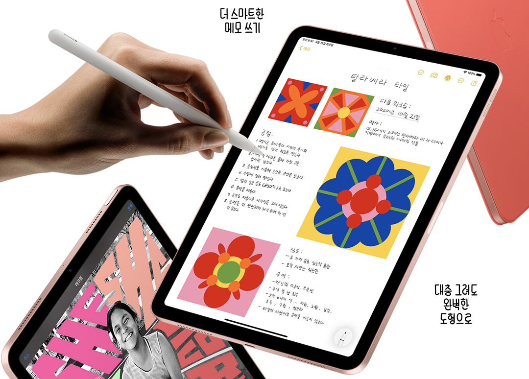 애플워치보다 저는 원래 갤럭시 워치를 사용하고 있었고 애플원과 같은 구독 서비스는 현재 한국에서 서비스 되지 않는 항목들도 있기 때문에 관심이 떨어졌지만 아이패드 에어 4세대는 이번에 아이패드 프로의 가격이 부담스러웠던 사용자에게 참 매력적인 태블릿이 될거라 보입니다.