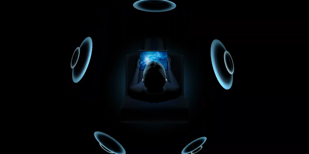 공간 음향은 동적인 머리 추적 기능으로 시청 중인 영화나 비디오에 서라운드 사운드 환경을 구현하여 마치 영화관에 온 것처럼 소리가 모든 곳에서 들리는 효과를 냅니다. 머리나 기기를 움직이더라도 사운드 필드가 화면의 배우 또는 동작에 매핑된 상태로 유지됩니다.