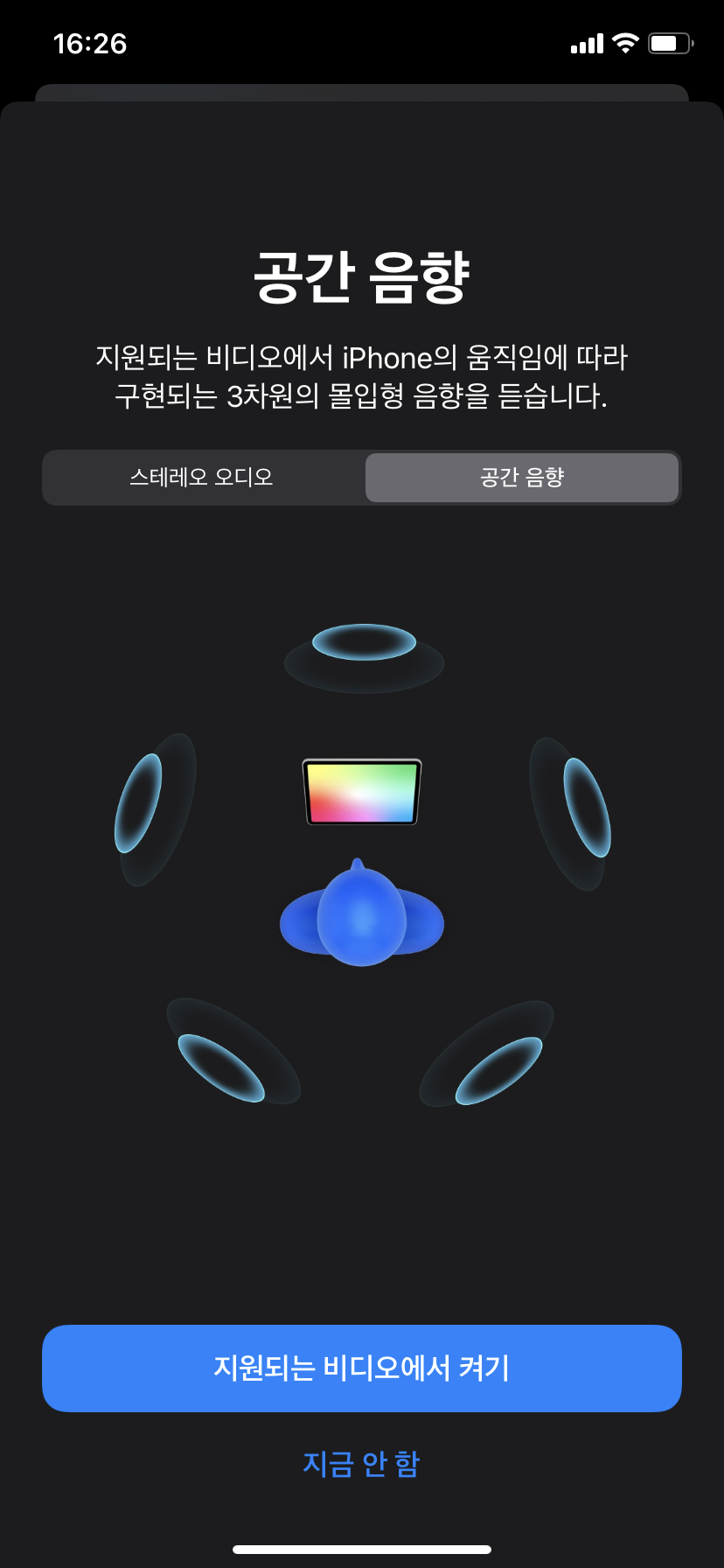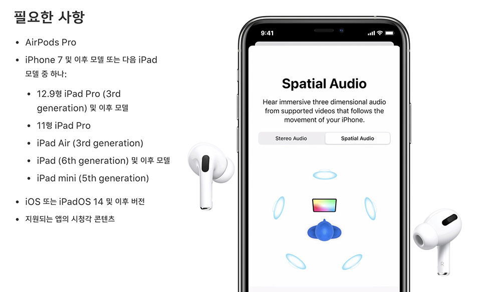 공간 음향은 모든 애플 디바이스에서 지원하는 것은 아닙니다.