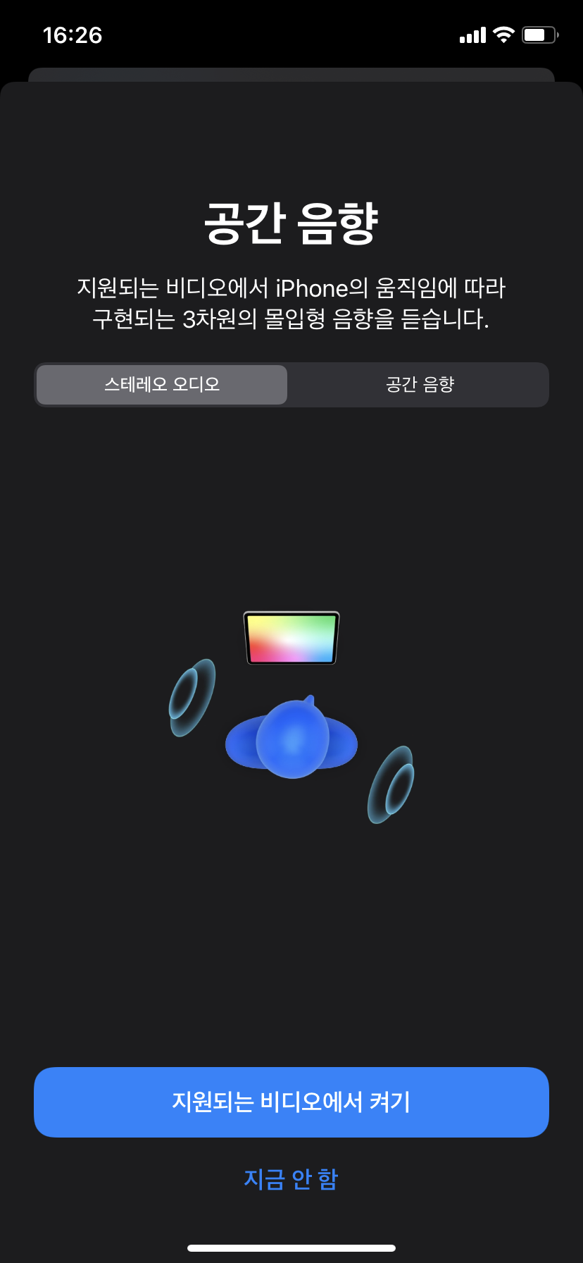 공간 음향은 모든 애플 디바이스에서 지원하는 것은 아닙니다.