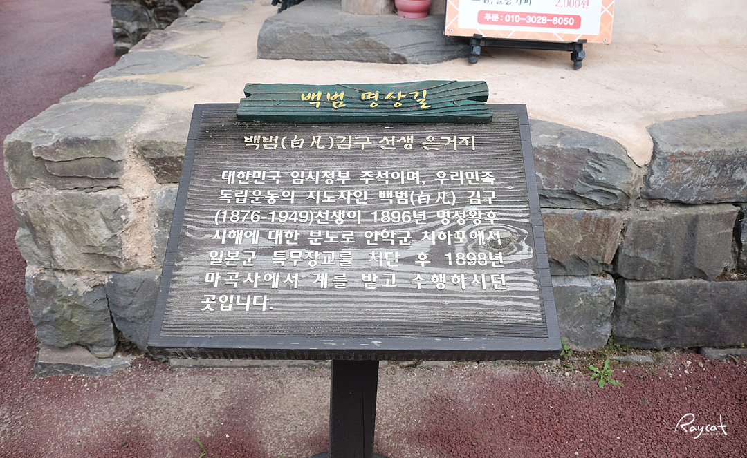 배련암은 작은 암자로 예전 백범 김구 선생이 숨어 지냈던 장소로 지금은 이곳을 방문하는 사람들을 위해 작은 카페로 운영되고 있습니다.