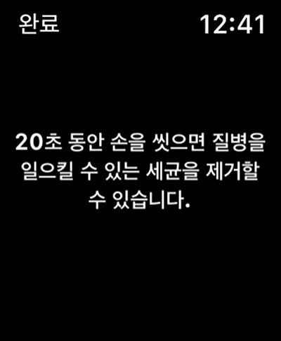 코로나 시대 이후 애플워치에 새롭게 추가된 기능중 하나인데 손씻기를 감지 손을 20초 동안 씻는지 카운트를 하는 기능이 이번에 새로 추가된 기능중 하나입니다.