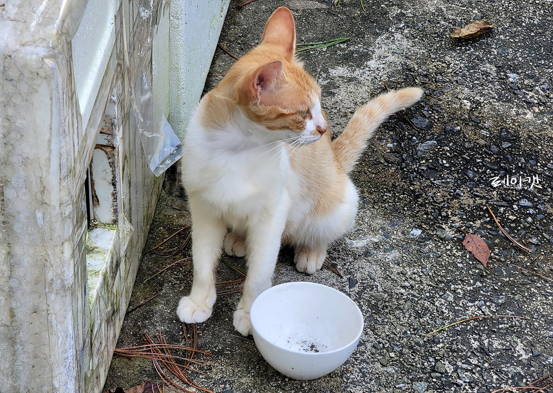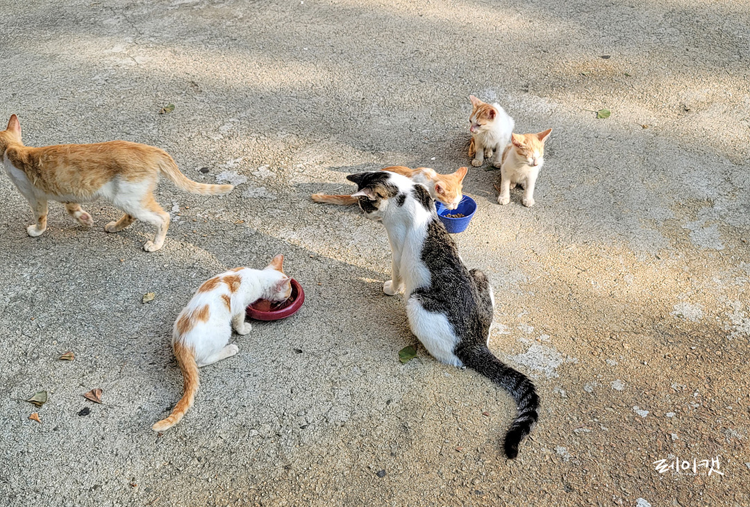 고양이 급식소도 이번 장마에 모두 휩쓸려 가버려 아무래도 여기가 밥 얻어먹기 제일 편하다는 것을 아는 느낌이다.