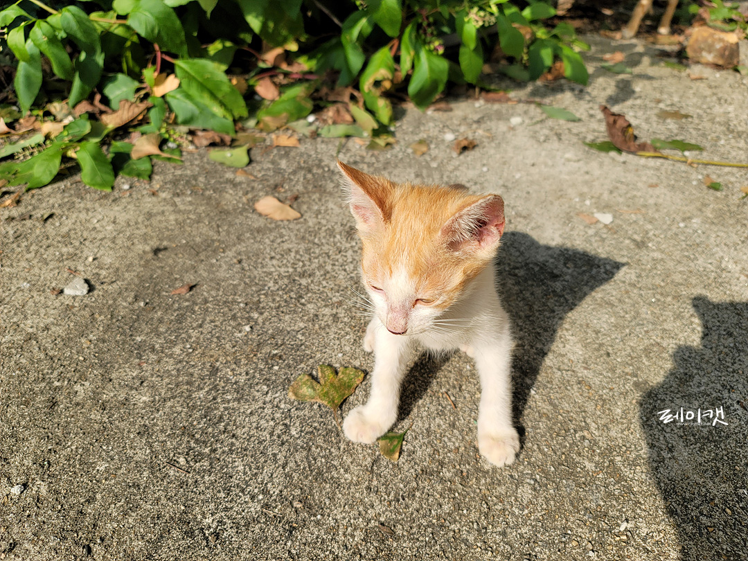 가끔 오는 곳이라 주인 아저씨한테 물어보니 비오는 밤에 고양이 두마리가 창고를 들락날락 하더니 애기들까지 데리고 창고 앞에 피신해 있었다고 한다. 처음 왔을때만 해도 눈도 못 뜬 애기까지 있었는데 지금은 여기저기 돌아다니고 있다.