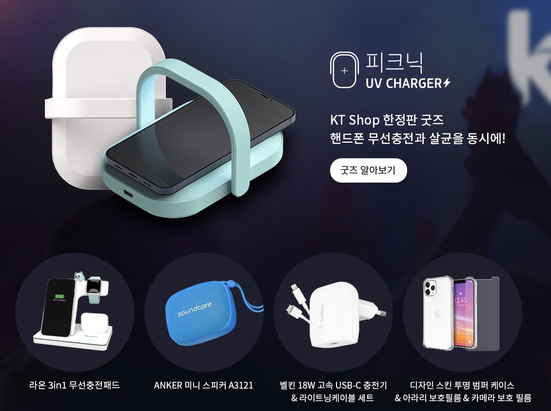kt shop에서 예약 구매할 경우 피크닉 UV 차지, 무선충전 패드, 미니 스피커, 벨킨 usb-c 충전기, 디자인 스킨 투명 범퍼 케이스까지 하나를 선택해 받을 수 있습니다.