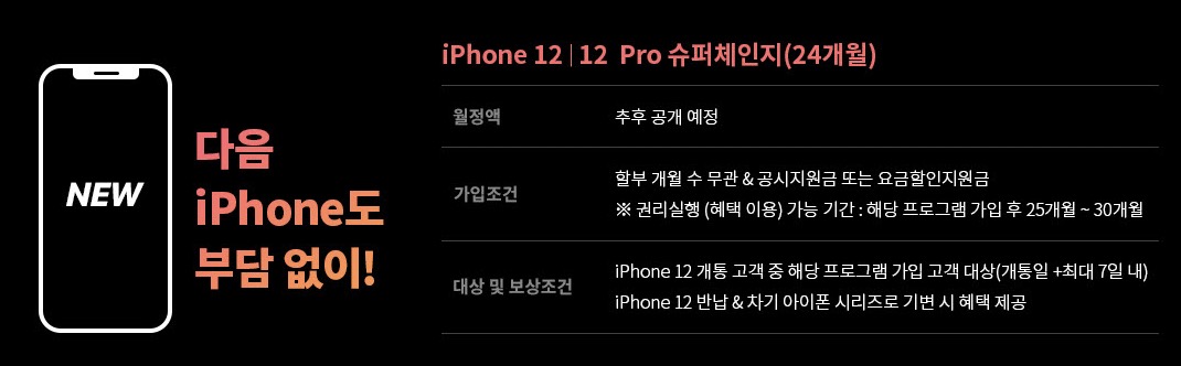 이번 아이폰12와 아이폰12 프로도 슈퍼체인지를 적용받을 수 있습니다.