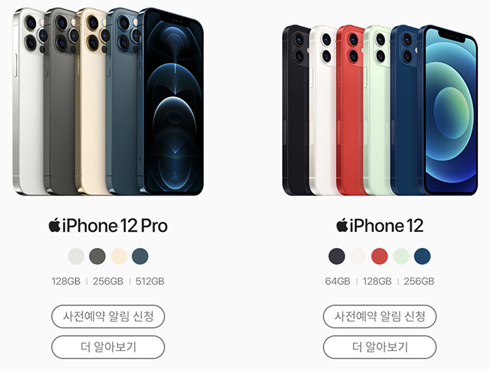 이번에 아이폰 12는 모두 4종류로 나왔는데 아이폰 12, 아이폰 12 프로는 10월 23일 사전예약을 하며 10월 30일 출시 예정이기도 합니다.