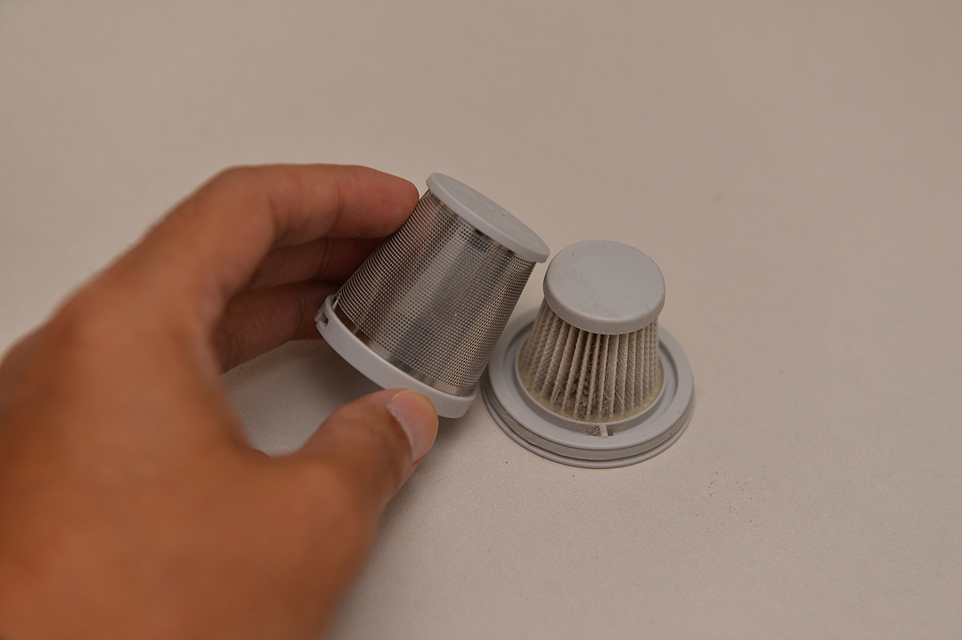 중앙을 잡고 돌리면 먼지통이 저렇게 분리가 되고 필터와 먼지통은 물청소가 가능하지만 모터가 있는 본체는 물청소를 하면 안 됩니다.