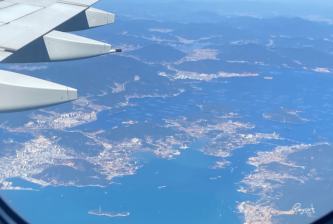 보통 비행기를 타면 잠을 잤는데 이번처럼 처음부터 끝까지 창밖을 보면서 여행해보긴 처음 이었네요. 강릉, 포항, 부산, 제주도 상공을 지날때 선회하며 더 고도를 낮춰서 지금까지 비행하면서 땅을 쳐다본적이 없었던것 같은데 이번에는 2시간 내내 계속 땅과 바다만 보며 이동한 것 같습니다.