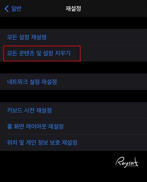설정 -> 일반 -> 재설정 -> 모든 콘텐츠 및 설정 지우기를 선택하고 실행합니다. 자 그러면 아이폰의 모든 데이터가 삭제되고 초기화 됩니다.