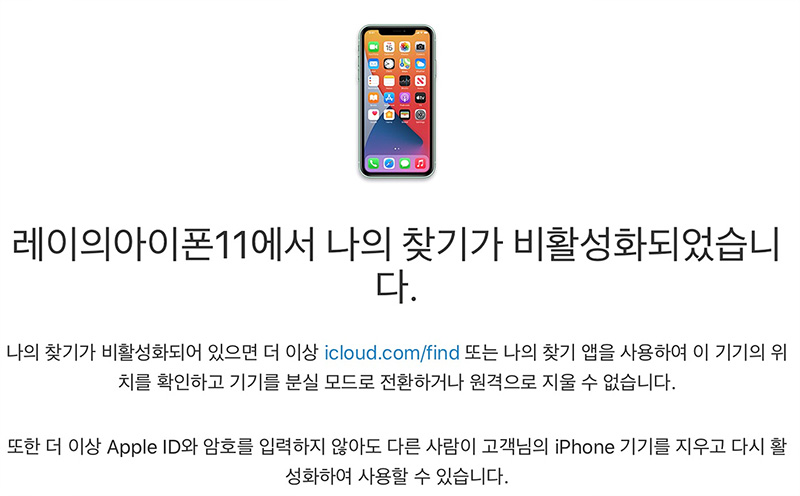 초기화가 끝나고 iCloud.com에 접속 나의 iPhone 찾기를 보면 더이상 초기화된 아이폰은 나오지 않습니다.