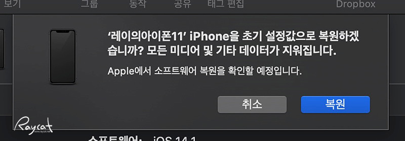 맥에서 데이터를 백업하고 그리고 초기화 할 수 있는데 맥에 라이트닝 케이블로 아이폰을 연결 파인더에서 아이폰을 선택하면 위 캡처화면을 볼 수 있습니다. 필요한 데이터가 있다면 먼저 백업하고 초기화를 진행하면 됩니다.