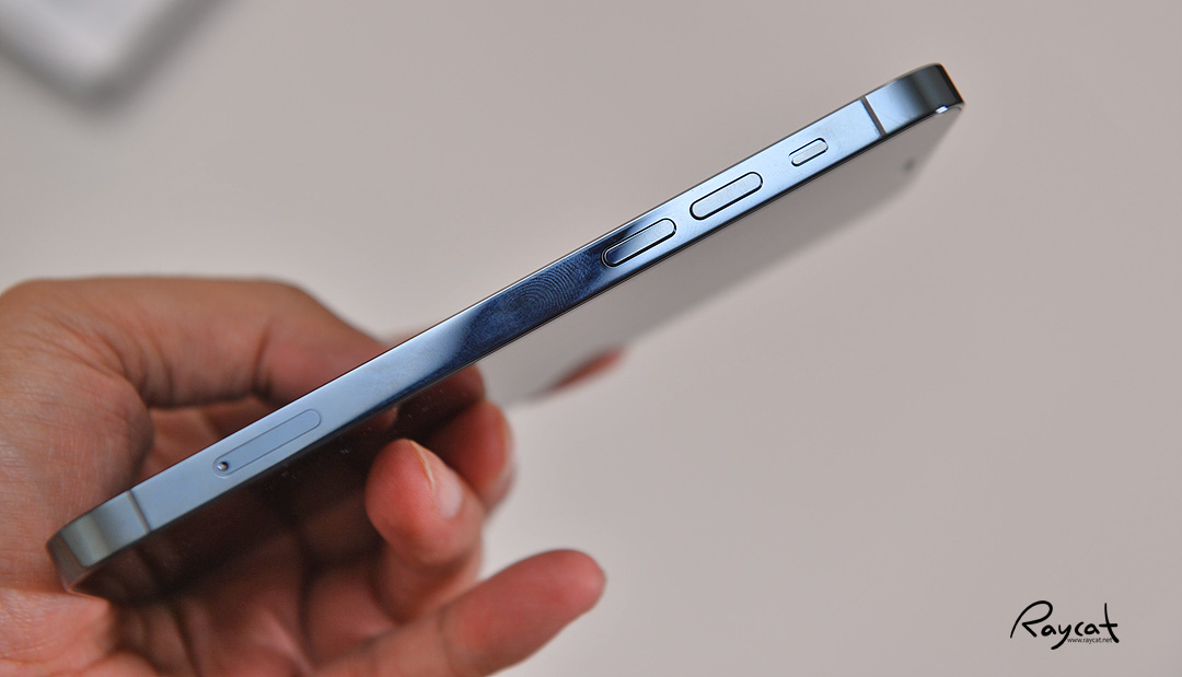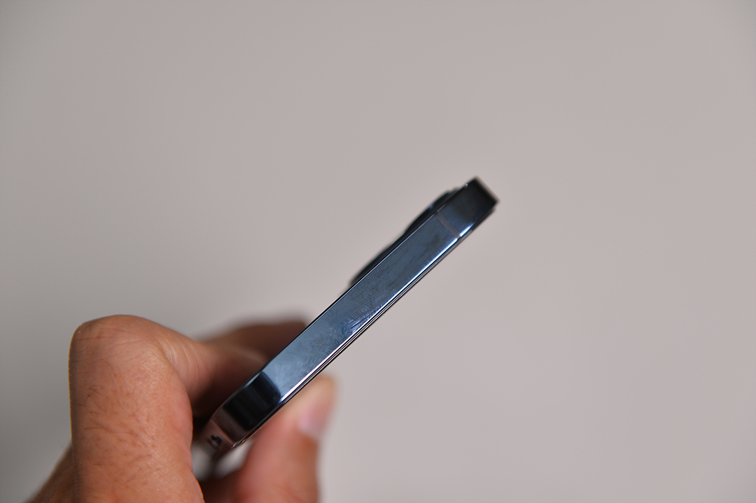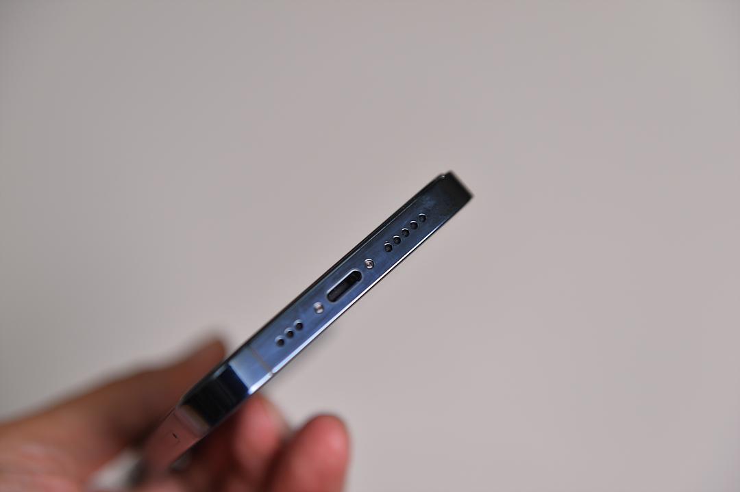 버튼 리스 디자인을 추구해 아주 매끄러운 느낌이 드는 측면인데 이 부분은 금속이나 뾰족한 물체에 닿으면 흠집이 날 수 있으니 좀 주의해야 합니다. 아이폰12 프로나 맥스도 마찬가지 겠지만 측면은 우리가 주머니에 넣다가 열쇠나 다른 쇠붙이 뾰족한 물체에 닿으면 긁힐수 있으니 주의할 필요가 있습니다.