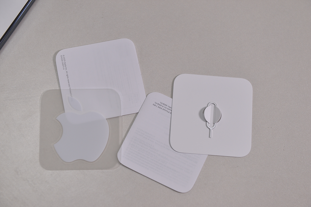 충전기를 제외하고 USB-C TO 라이트닝 케이블, 스티커, 유심핀, 간단 사용설명서가 있습니다.
