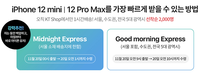 KT 아이폰12 미니와 아이폰12 프로 맥스 사전예약