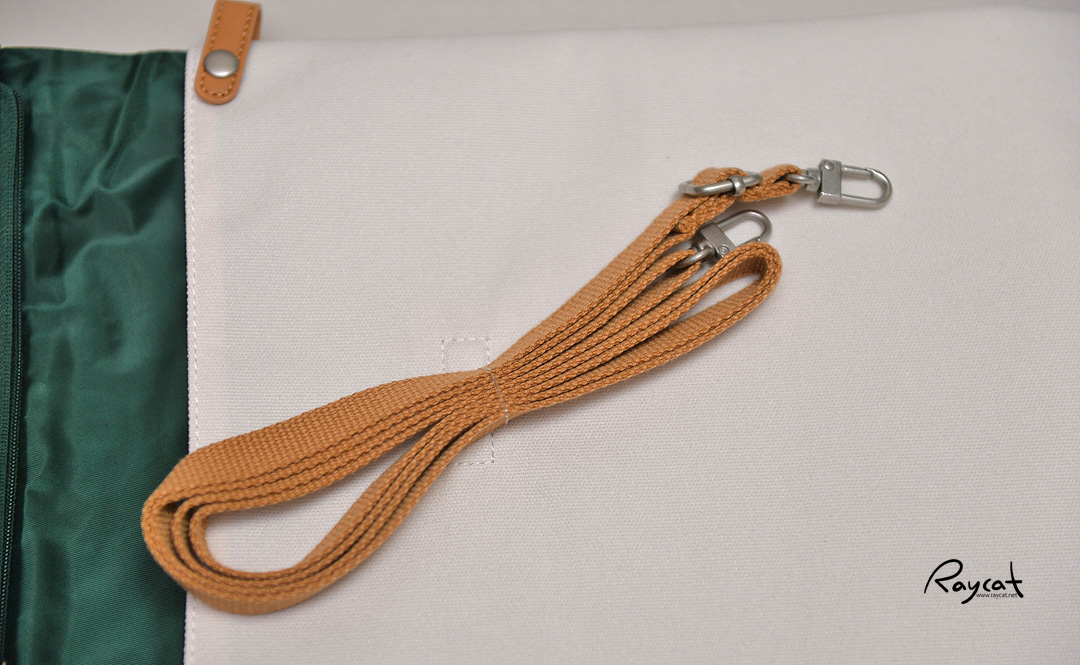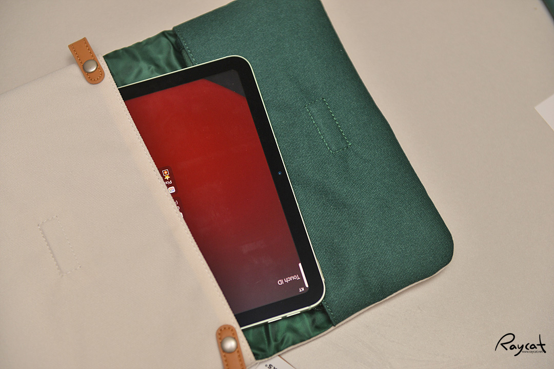 어깨끈은 뒤쪽 고리에 걸거나 측면에 연결해 사용할 수 있으며 펼쳤을 때 아이패드 넣기 딱 좋은 크기 입니다.