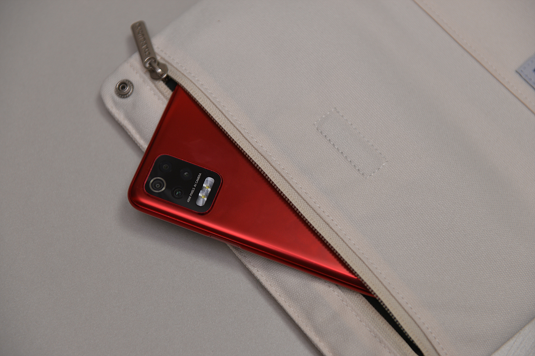 뒤 쪽에 지퍼달린 포켓은 스마트폰 넣으면 딱 맞는 크기 입니다. 물건을 넣을 수 있는 포켓은 모두 3개가 있습니다.