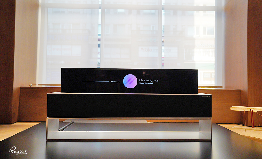 LG 시그니처 올레드 R의 스탠드에서 화면이 올라오거나 내려가서 저렇게 사라지는 모습은 몇 번을 봐도 신기한 장면입니다.