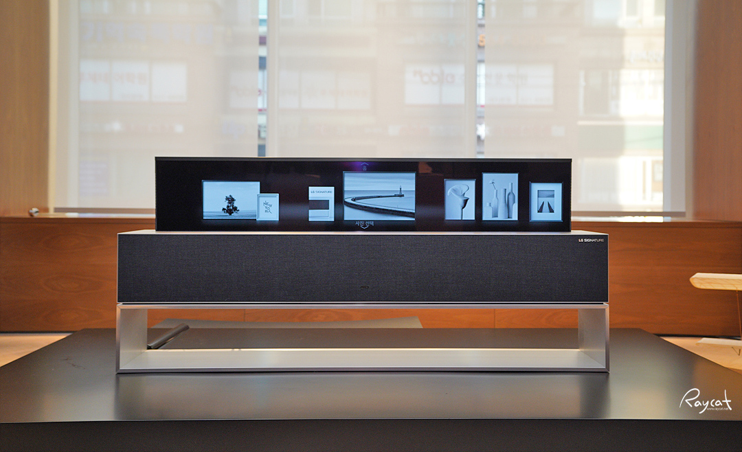 LG 시그니처 올레드 R의 스탠드에서 화면이 올라오거나 내려가서 저렇게 사라지는 모습은 몇 번을 봐도 신기한 장면입니다.