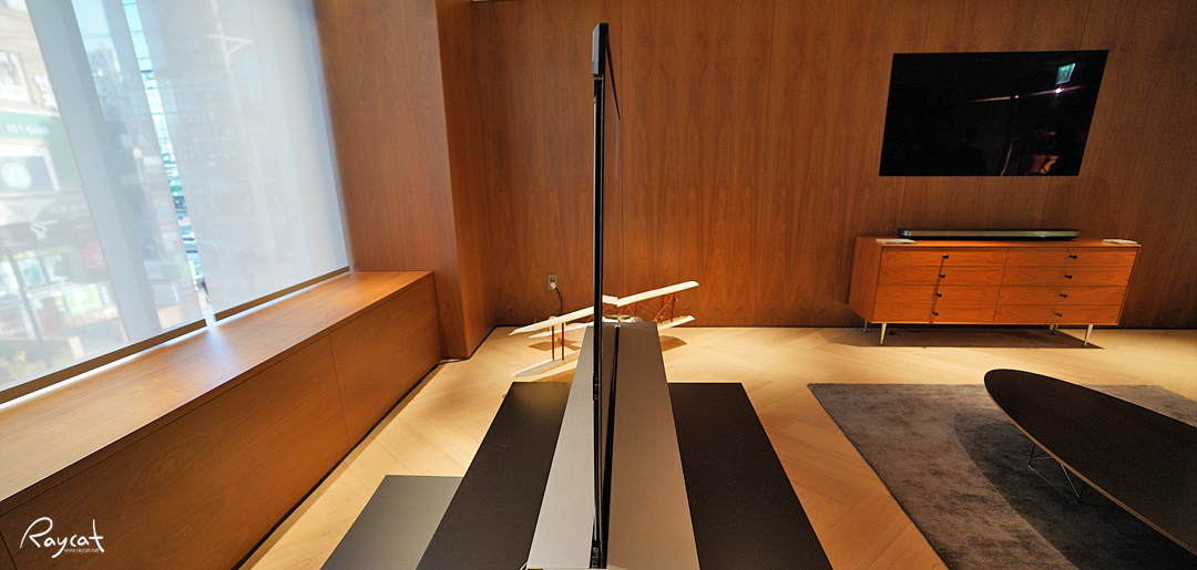 당연히 TV를 보지 않을 때는 다시 창 밖의 풍경을 감상할 수 있습니다. 이러한 LG 시그니처 올레드 R만의 장점을 잘 보여줄 수 있도록 더콘란샵 또한 창문 앞에 TV를 배치한 것을 볼 수 있었습니다.