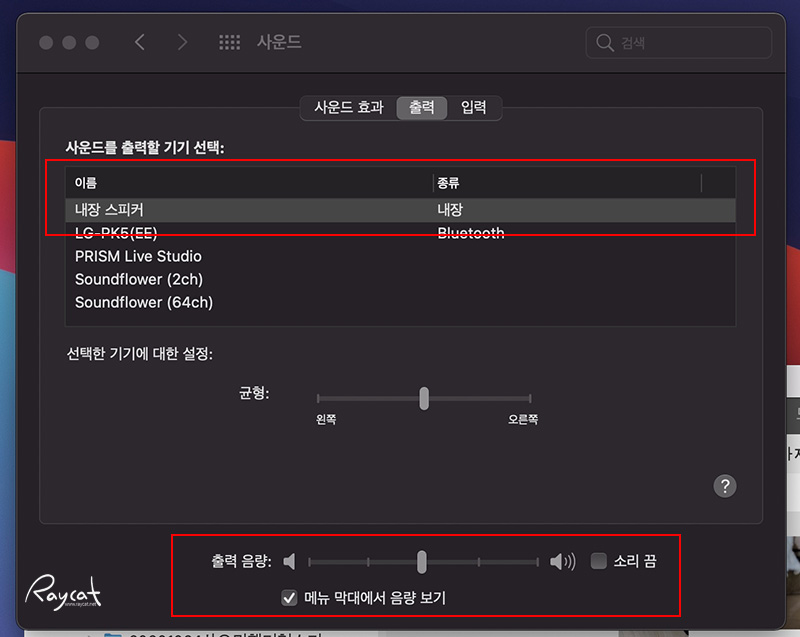 시스템 환경설정에서 사운드를 선택 사운드 설정 에서 출력을 확인해야 합니다.
