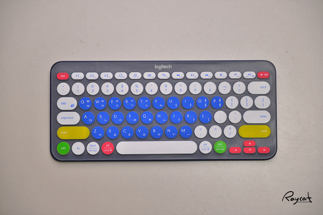 기본 OS와 키보드 문자 배열은 같지만 아무래도 휴대용으로 키보드 크기를 줄이다 보니 키 마다 기능키 옵션이 달라지게 됩니다. 로지텍 K380도 OS 마다 키보드 기능키와 한영전환이 좀 다릅니다.