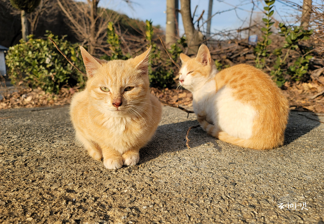 밥통에 사료를 채줘주면 쪼르르 달려나와 밥 먹고 일광욕을 즐깁니다. 아무래도 이 가족은 좀 더 오래 이곳에 머무를것 같은데 날씨가 좋은 날은 마당에 나와서 일광욕을 즐깁니다.