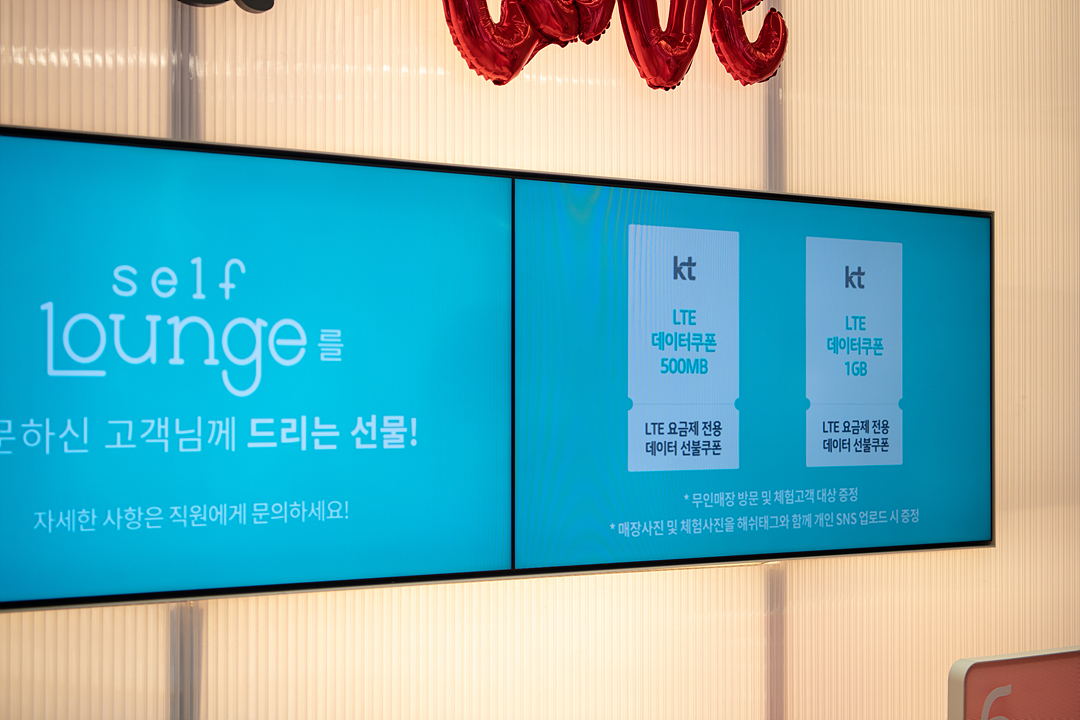 하이브리드형 무인매장 kt 셀프 라운지를 오픈하며 오픈기념 이벤트도 진행중 입니다.