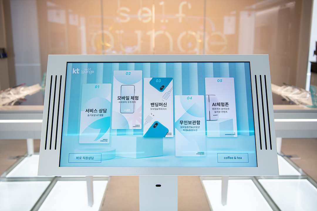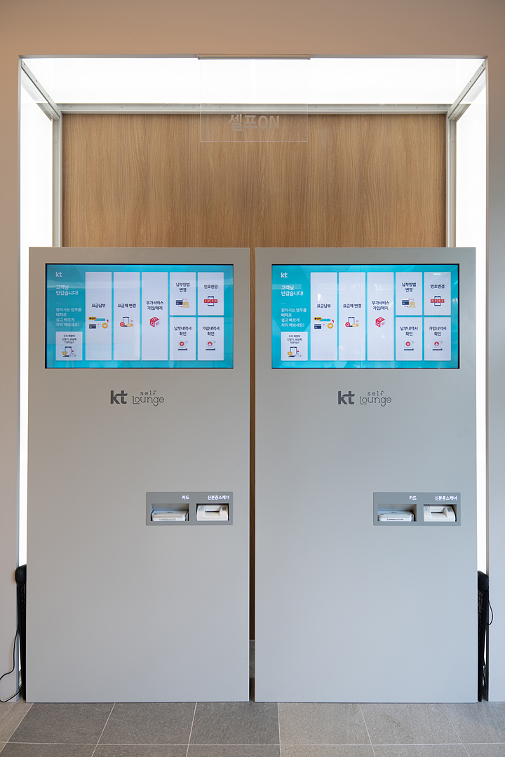 코로나 때문에 사실 사람을 만나는것 자체가 요즘 부담이기도 합니다. 이런 추세에 맞춰 kt에서 비대면 셀프 서비스로 모든 것을 이용할 수 있는 셀프 라운지를 오픈 했습니다. 셀프 라운지를 이용하게 되면 고객은 비대면으로 모든 서비스를 이용할 수 있으며 필요에 따라 상담원을 만나서 직접 상담할 수 있습니다.