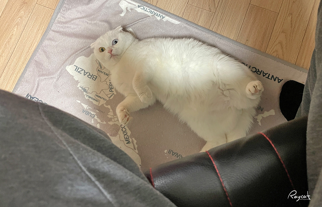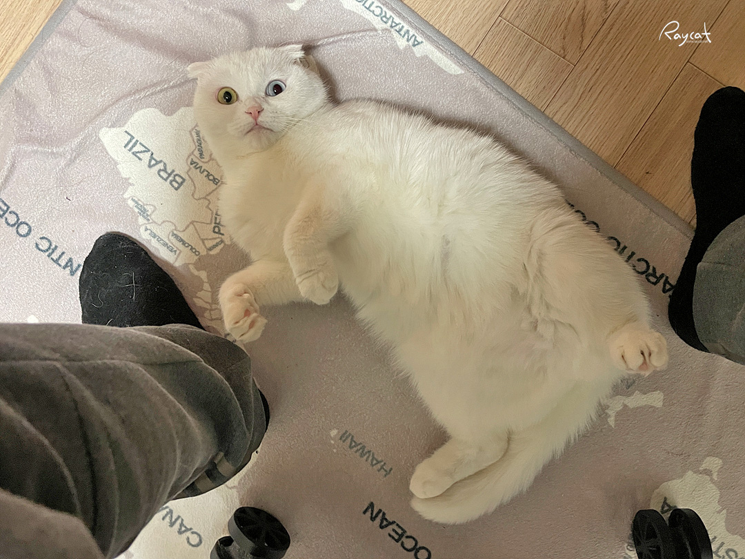 그러다보니 고양이와 함께 집에서 보내는 시간도 예전과 비교해 훨씬 길어졌는데 집사가 집에 오래 있으니 고양이는 꽤 기분이 좋은듯하다. 함께 놀수있는 상대가 생겨서 그런것 같은데 내가 작업하다 이상한 느낌이 들어서 발 밑을 보면 고양이가 혼자 애교를 부린다.