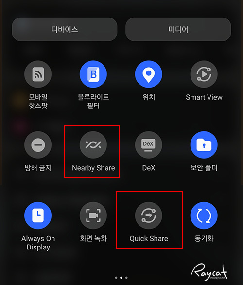 Wi-Fi Direct로 파일을 공유 했다면 더이상 이 기능은 제공하지 않습니다. 그럼 주변 다른 갤럭시 스마트폰과 공유 기능은 알림 바를 내려보면 Quick Share, Nearby Share 와 같은 다른 공유 기능을 이용해야 합니다.