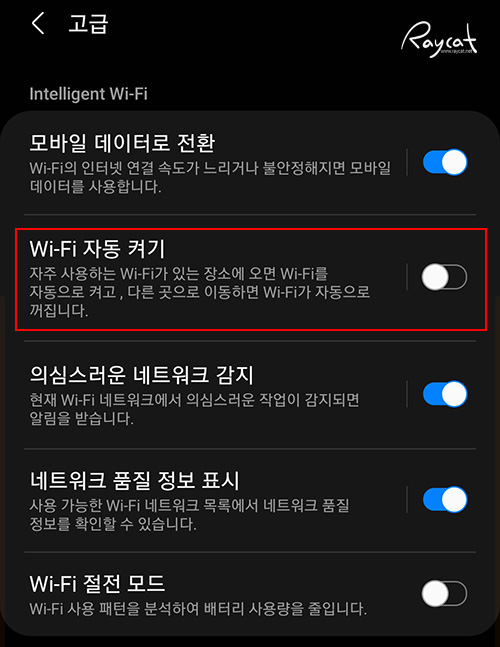 Wi-Fi 자동 켜기 기능이 안드로이드 11 정책에 따라 기본은 비활성화 상태로 전환됩니다.