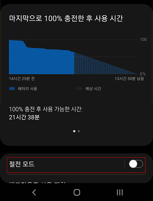 그리고 배터리 설정에서 달라진 부분이 또 있는데 아래 이미지 처럼 초절전 모드 설정이 변경 되었습니다.