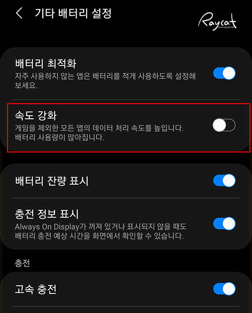 그리고 기존 고성능 모드는 '속도 강화'로 명칭이 변경 되었습니다.