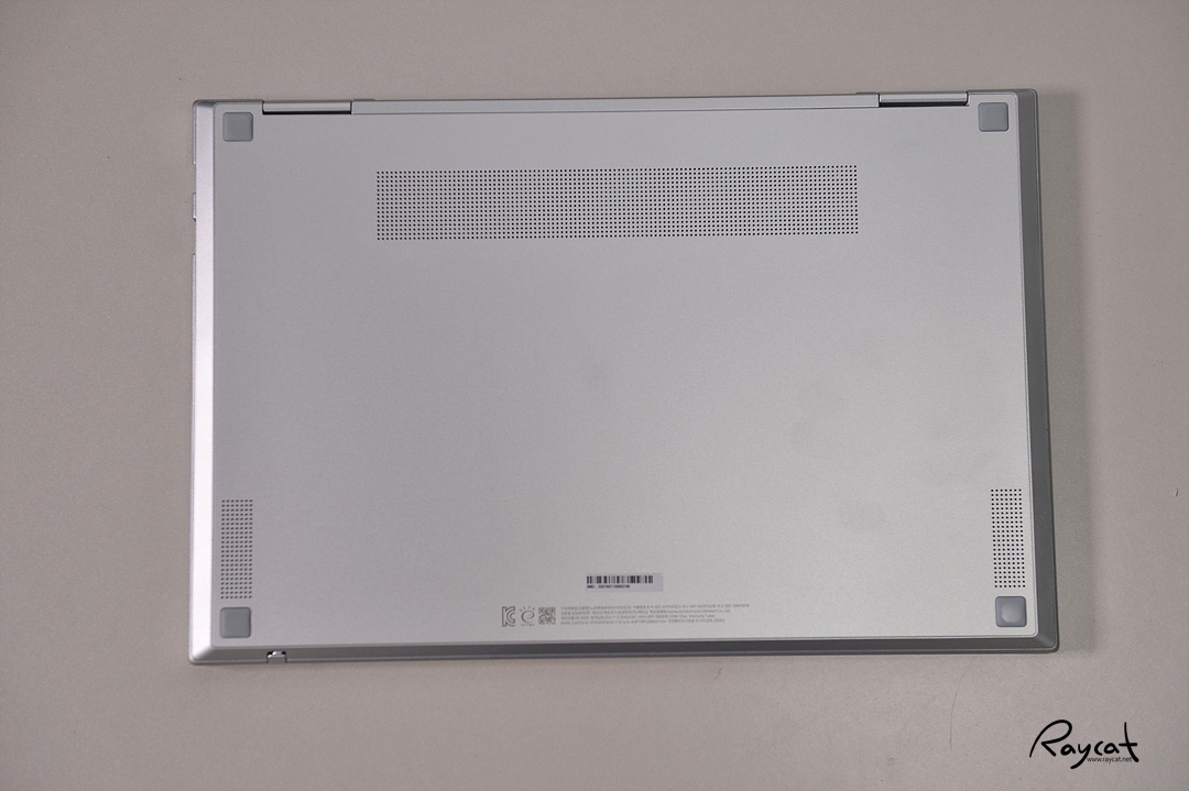 바디 전체 마감은 알루미늄 메탈 소재로 마감되었으며 필요에 따라 노트북처럼 혹은 상판을 회전해 태블릿처럼 사용할 수 있는 2 in 1 윈도 노트북이기도 합니다. 바닥면에 3개의 스피커가 있으며 AKG 스피커를 탑재하고 있습니다.