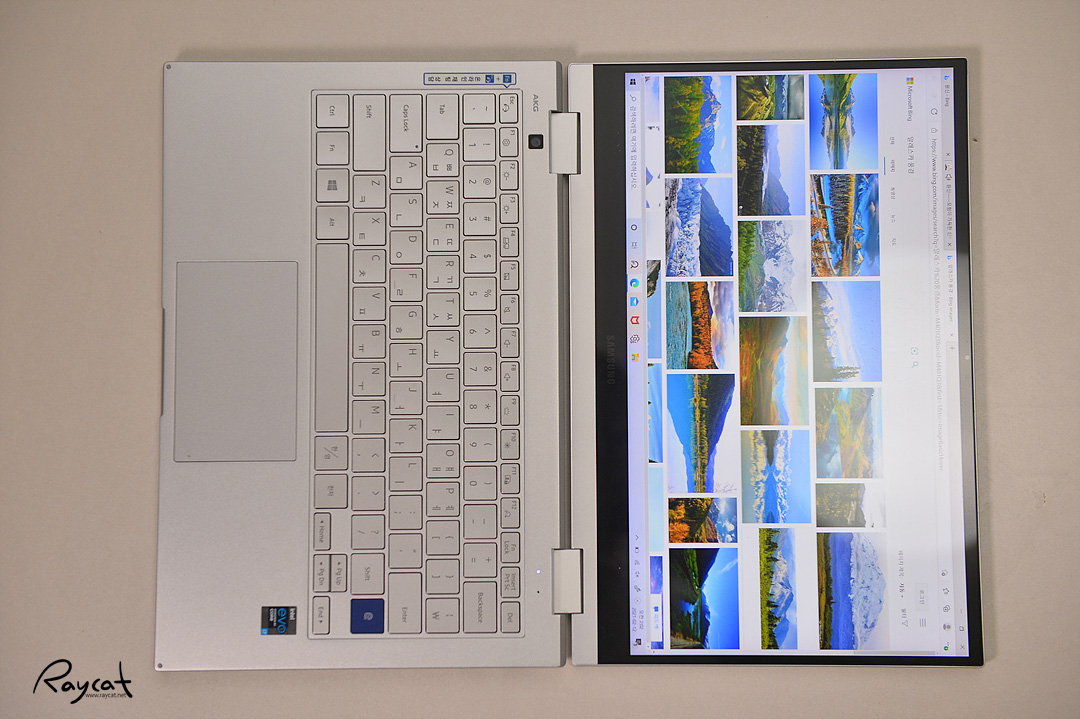마치 노트북에서 갤럭시 노트의 S펜을 사용하는 느낌을 주는데 펜 기능에 제스처 기능도 지원하고 있으며 갤럭시 노트의 S펜 역시 갤럭시 북 플렉스2에서 사용할 수 있습니다. 갤럭시 노트의 S펜과 갤럭시북 플렉스2에 내장된 S펜을 비교해 보면 큰 차이가 없음을 느낄 수 있습니다.