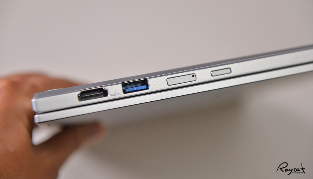 측면에 외부기기를 연결할 수 있는 확장 포트가 꽤 많은데 태블릿 모드 사용을 위해 전원 버튼도 측면에 있으며 나노 유심 슬롯도 측면에 있습니다.