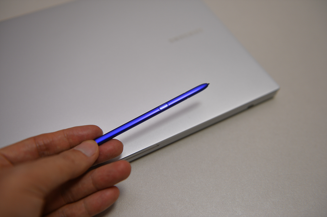 갤럭시 북 플렉스2의 큰 특징 중 하나는 갤럭시 노트에 사용하는 S펜을 내장하고 있으며 S펜 기능을 지원하고 있습니다.