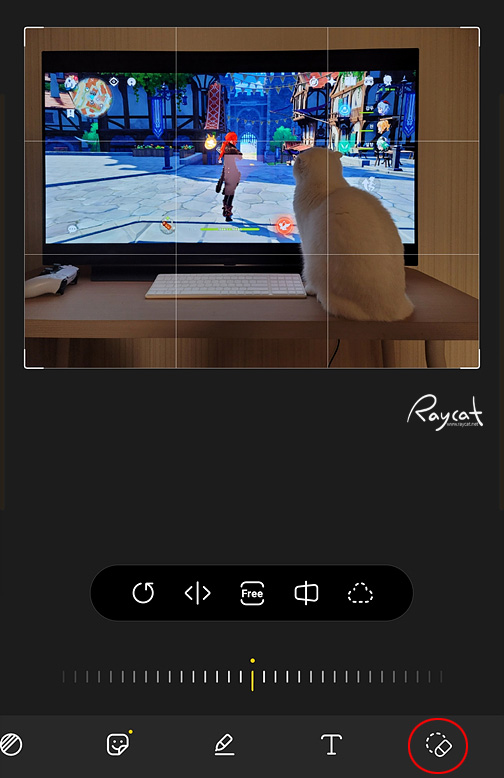 위 캡처 이미지에서 보면 아시겠지만 tv 앞에 앉아있는 고양이를 개체 지우기로 지워 봤는데 개체 지우기는 완벽한 기능은 아닙니다. 그리고 배경과 지우고 싶은 대상이 뚜렷히 구분이 되고 컬러가 서로 보색일 때 더 깔끔하게 삭제됩니다.