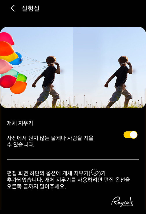 이번 갤럭시 s21이 출시되며 포토 에디터의 실험실에 개체 지우기란 새로운 기능이 추가 되었죠.