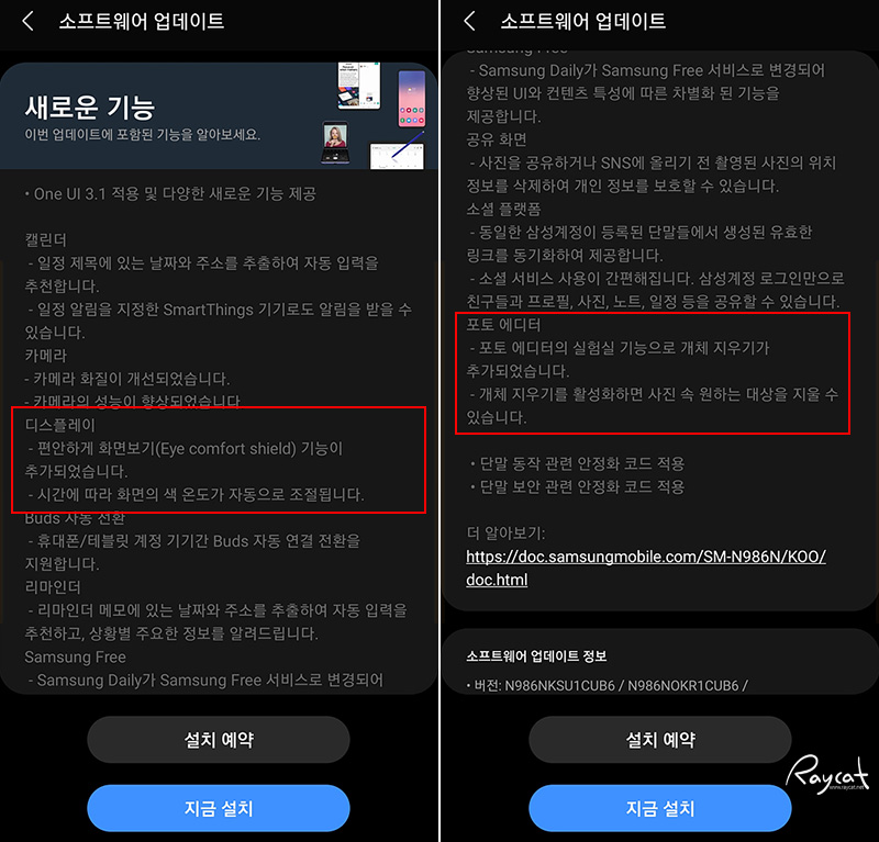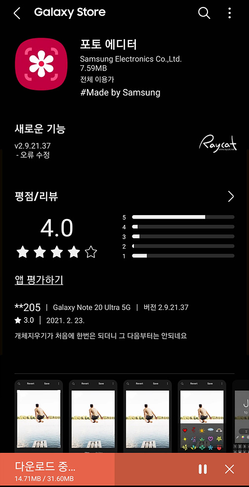 참고로 one ui 3.1로 먼저 업데이트후 갤럭시 스토어에서 포토 에디터도 업데이트 해야 개체 지우기를 사용할 수 있습니다.