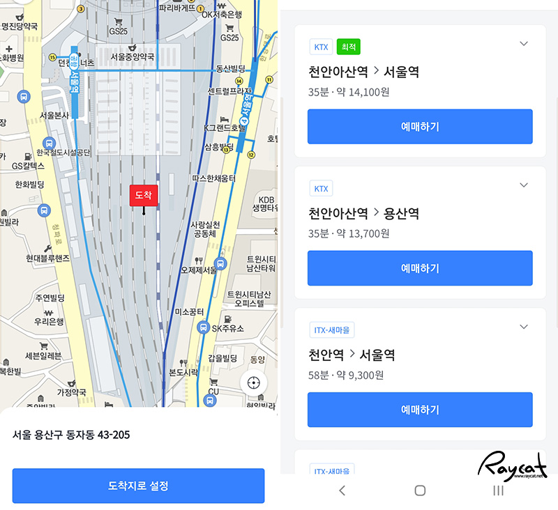 기차역을 이름대로 검색하면 죽 나열되는데 이 방식은 기존 코레일톡과 비슷합니다.