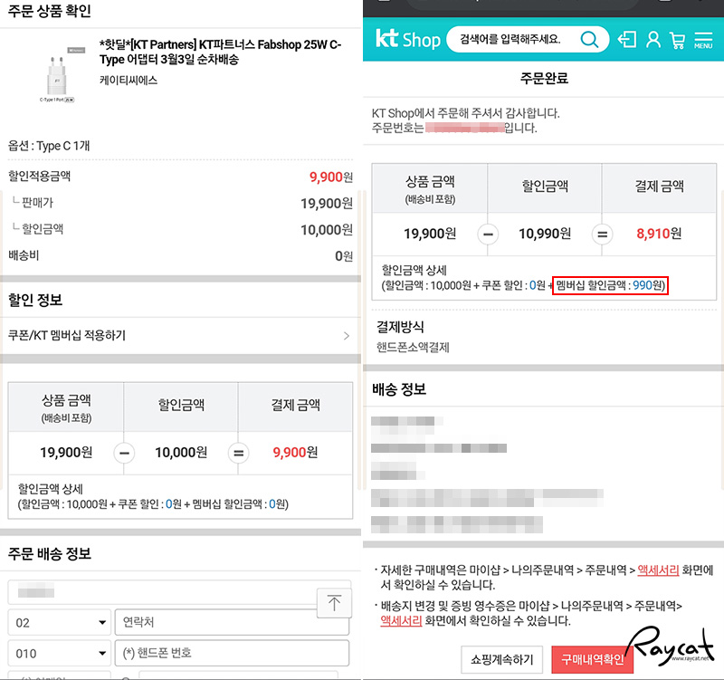 참고로 주문 시 주의할 사항은 기본 할인에서 주문 옵션에서 kt 멤버십을 선택해야 멤버십 차감으로 추가 할인이 있으며 대리점 코드와 함께 kt 매장 사원 id를 입력해야 결제가 가능합니다.