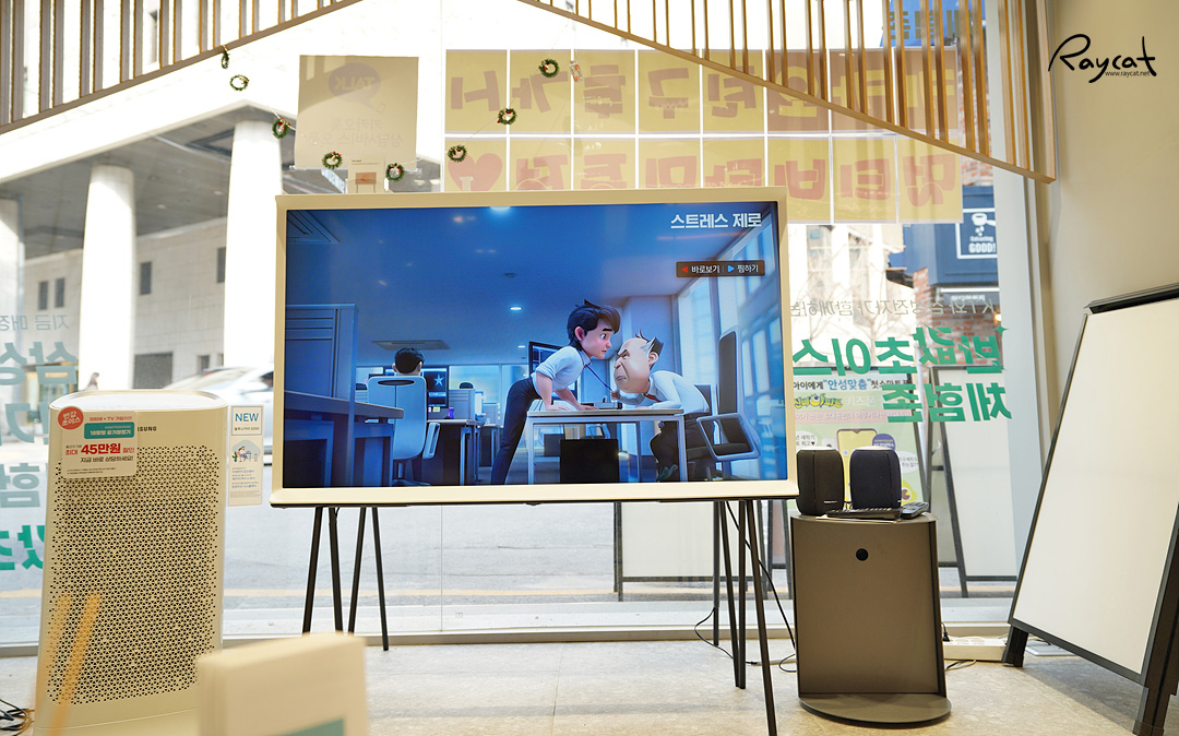 통신사 서비스 매장인데 한쪽에 백화점이나 마트의 가전 판매점처럼 가전제품도 할인 판매를 하고 체험할 수 있도록 되어 있는 게 특이했는데 kt와 삼성전자 제휴로 올레 tv와 인터넷 서비스 가입자는 삼성 가전제품을 할인받아 구매할 수 있습니다.