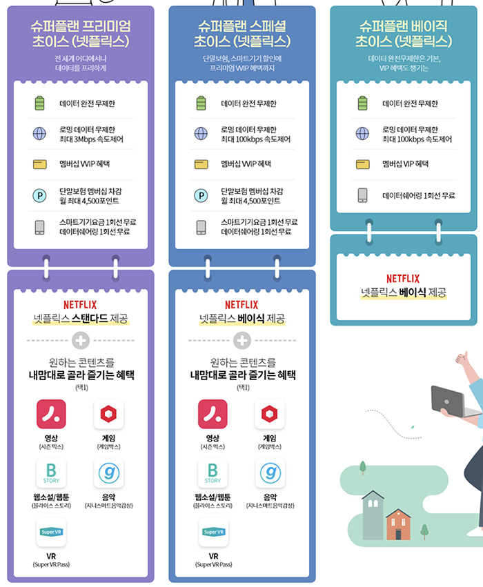 요금제의 경우 갤럭시 A42 5G는 이름에서 알 수 있듯이 5G 서비스를 지원하고 있어서 kt 슈퍼플랜 5G 서비스 요금제 가입이 가능하며 제경우 넷플릭스를 즐겨봐서 슈퍼플랜 초이스 (넷플릭스)를 이용중이기도 합니다.