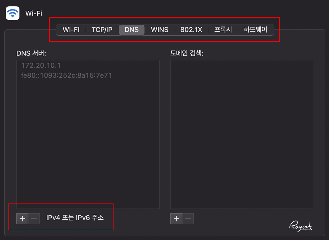 Wi-Fi를 선택하고 고급을 누르면 네트워크를 재설정 할 수 있는데 프록시를 설정하거나 혹은 와이파이 호스트를 바꿀때 지정할 수 있습니다. 여기서 DNS를 선택하고 아래쪽에 + 를 누르면 DNS 서버를 추가 할 수 있습니다.