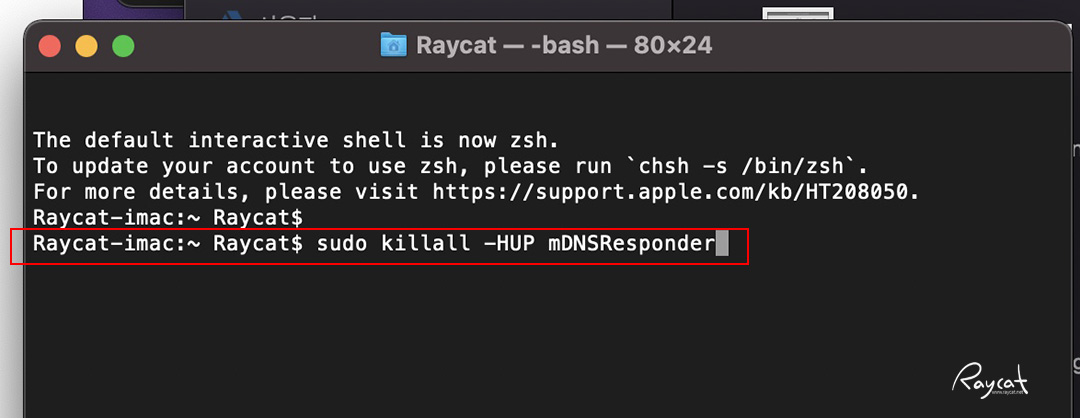 DNS 캐시 재설정 명령은 터미널을 실행 'sudo killall -HUP mDNSResponder' 입력후 엔터를 누르면 됩니다.