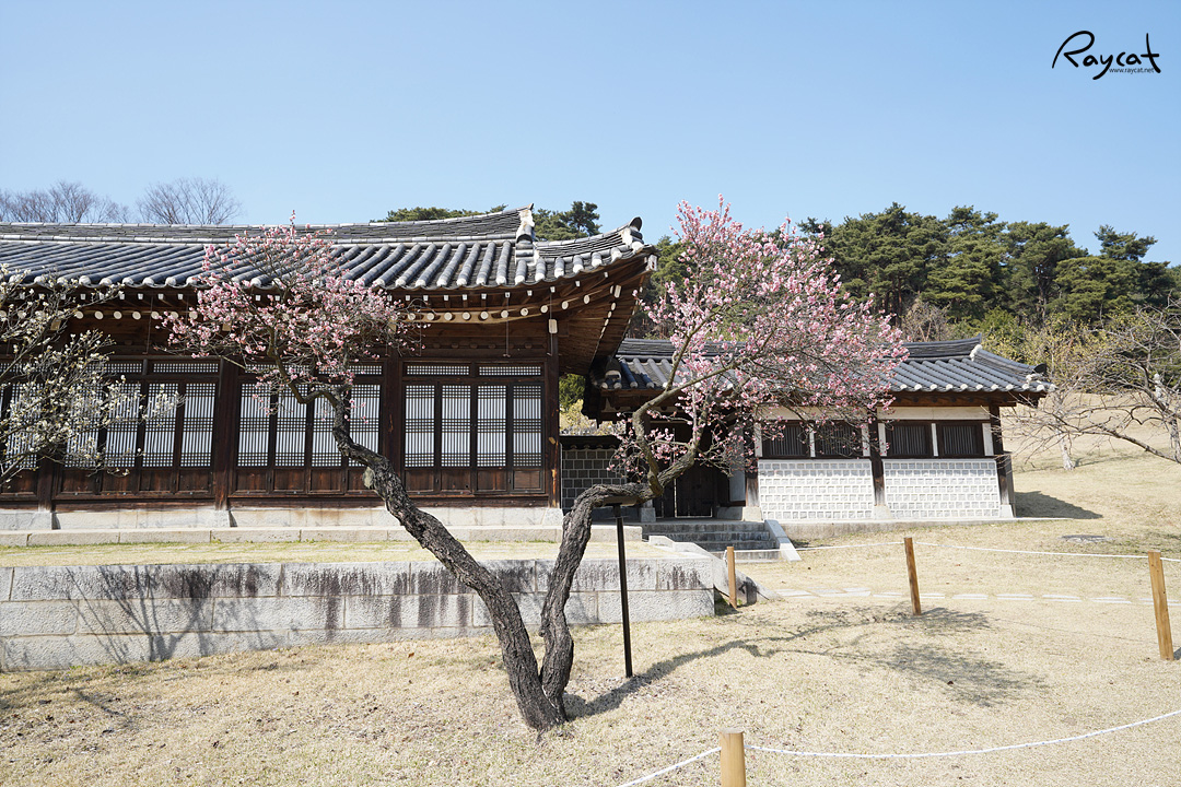 이 집에 있는 꽃나무중에 제일 유명한 홍매화는 사람으로 부터 훼손을 방지하기 위해 울타리 안에 있다.